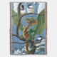 Green small dragon in a tree in winter trying to make friends with chickadees.