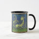 A curiously leafy green dragon-creature runs across the garden, while vines & tendrils cavort in arabesque curlicues reminiscent of Mediaeval illuminated borders.
