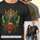 Green Dragon on Gold Throne with Red Flowers T-Shirt