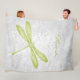 Keep warm on chilly fall and winter nights with a Green Dragonfly Personalised Fleece Blanket. Blanket design features a colourful dragonfly, a soft white leafy vine against a light grey grunge damask background with an area to personalise with your name. Additional gift items available with this design as well as a variety of colours.