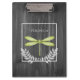 Jot down notes and reminders on a secure surface with a Green Dragonfly Rustic Personalised Clipboard. Clipboard design features a vibrant dragonfly adorned with delicate foliage against a dark grey rustic wooden background. Additional gift items available with this design as well as a variety of colours.