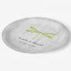 Elegant and simple Wedding paper plates featuring a green dragonfly against a grey grunge background. This design is a unique choice for a modern wedding. Easy to customise with your wedding details. Click "Customise It" to find more personalisation options.