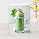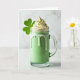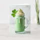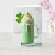 This card shows an emerald-green drink in a clear mason jar as the main focus, lit by bright light that makes the glass shine. A tall swirl of white whipped cream sits on top, dotted with tiny green and gold sprinkles, and a fresh three-leaf clover is tucked near the peak for a lucky touch ☘️. Thick white glaze runs down the outside of the jar in slow drips, like a sweet ribbon clinging to the glass. The scene feels a little flirty and friendly, like something you’d share on a cozy café date or hand to a close friend with a grin 💚. The greeting text sits near the top in green, with a smaller line below in gold, both kept clear against the light background. Everything is set against a softly blurred pale marble surface that keeps the attention on the jar. Share St. Patrick's Day sentiments with someone you care about.