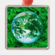 Image of the Earth as a green marble against a bed of lush foliage - a digital collage to promote ecological awareness
