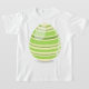 Make a design statement with your easter egg by going with this very stylish design of a green easter egg. This easter egg has different shades of green stripes on it. This green easter egg design looks great on this girls t-shirt. Perfect for yourself or as a gift