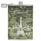 Enjoy your favourite alcoholic beverages anywhere with a Green Eiffel Tower Grunge Flask. Flask design features a grungy brick background in green with the Eiffel Tower adorned with elegant flourishes and space to personalise with your name. Additional colours available with this design as well. This item may be personalised with a name, monogram, or favourite saying of your choosing. Please contact me if you need assistance with personalisation.