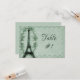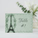 Number your reception tables with a Green Eiffel Tower reception table card. Table card design features the Eiffel Tower adorned with a fancy flourish frame against a grunge background and postal stamp embellishment. Additional wedding stationery available with this design as well. Need help with customisation? Please contact me and I will work out the wording and details to fit this design to your satisfaction.