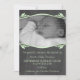 Sweet and whimsical Elegant Chalkboard Photo Baby Announcement in mint green featuring a simple vine and leaf design framing the photo area. Customise this lovely announcement with a photo of your bundle of joy and all the exciting details! Click "Customise It" to find more personalisation options.