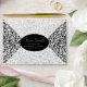 This envelope design features a deep green background beautifully accented with an ornate black damask pattern. The intricate floral and heart motifs create a luxurious and dramatic effect, while the dark tones bring out a sense of sophistication and mystery. The central area is kept clean for customisable text, framed elegantly by the rich ornamental design.