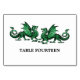 Perfect for a sophisticated fantasy tabletop game themed wedding is this nerdy and unique Elegant Dragons Wedding Table Number Card featuring a vibrantly coloured pair of green dragons. Easy to customise, simply add the appropriate table number(s) in the text field provided. Click "Customise It" to find additional personalisation options.