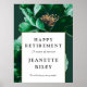 This elegant emerald green and gold floral happy retirement welcome sign can be personalised with your information in modern typography. Designed by Thisisnotme©