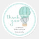 Add a sky-high touch of sweetness to your gender neutral baby shower with these adorable round "thank you" stickers, featuring a charming watercolor elephant soaring in a soft mint green hot air balloon, perfect for sealing favour bags. Personalise each sticker with the mum-to-be's name and the baby shower date for a custom touch that ties your theme together beautifully. Whether you're going for soft storybook vibes or a dreamy adventure theme, these stickers are the perfect finishing detail.