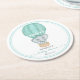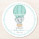 Add a whimsical touch to your baby shower tables with this adorable paper coaster featuring a sweet watercolor elephant soaring in a soft mint green hot air balloon. Perfect for a gender neutral baby shower, this charming design brings a light, dreamy feel to your celebration.