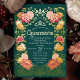 Celebrate your Quinceañera in an enchanted garden! This invitation features a lush frame of pink and orange florals and gold accents against a green background, adding a touch of magic to your special day. Order now & set the tone for a celebration as beautiful as you are!
