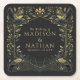 Green Enchanted Gothic Raven Floral Wedding Square Paper Coaster