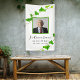 Remember the life of your loved one after their death with the elegant Green Ivy Vine Funeral Memorial Banner. This pretty custom greenery Celebration of Life tribute hanging vinyl sign features a botanical photograph of green English Ivy vine foliage and leaves with a white background and the words In Remembrance. Feel free to change the text and personalise it with a photograph, name and dates.