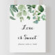 This green eucalyptus botanical love is sweet sign is perfect for a rustic wedding or bridal shower. The design features hand-painted artistic beautiful eucalyptus green leaves, assembled into neat bouquets to embellish your event.