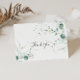 This green eucalyptus folded wedding thank you card is perfect for a modern wedding. The design features beautiful hand-painted watercolor green eucalyptus leaves, inspiring natural charm.