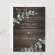 green eucalyptus foliage dark wood rustic elegant invitation