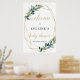 Green eucalyptus gold geometric frame welcome sign