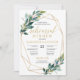 Green eucalyptus gold geometric rehearsal dinner invitation