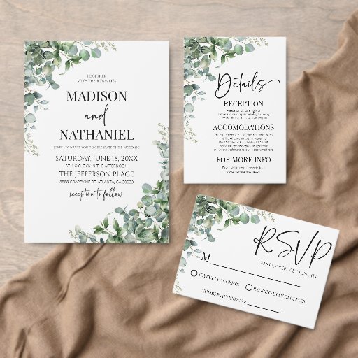 Green Eucalyptus Leaves Greenery Botanical Wedding Invitation