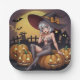 Green Eye Halloween Witch on Jack-O-Lantern's Paper Plate