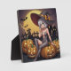 Green Eye Halloween Witch on Jack-O-Lantern's Plaque