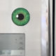 Green Eye Iris © Sunny Mars Designs. Cool, fun custom printed green eyeball novelty round fridge or refrigerator magnet with a trendy, modern, beautiful, unique, freaky, creepy, weird and twisted graphic illustration of a striking big green realistic eyeball iris of an eye. Other colour eyeball designs are also available in store.