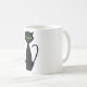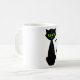 A green eyed black cat sitting up straight. This design looks really effective on this Mug
