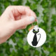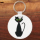 A green eyed black cat sitting up straight. This design looks really effective on this Keychain