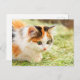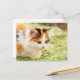 This cute green-eyed calico cat postcard features a photo of farm cat sitting on a bale of hay. Photography created by award-winning photographer Maria Jeffs.