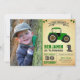 Green Farm Tractor Kids Photo Birthday Party Invitation