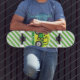 Green Farm Tractor with Yellow; Green & White Skateboard