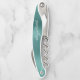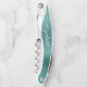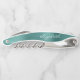This distinctive personalised corkscrew features a modern green brushed metal background. Customise it with a name in white cursive handwriting-style script.