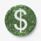 Green Faux Glitter Dollar Sign Pattern Paper Plate