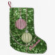 Beautiful Customisable Victorian Style Christmas Stocking Featuring Green Faux Glitter Pink & Green Ornament Balls Design - Can Personalise with Name - Makes a Great Christmas Gift - Double Sided with Slightly Different Designs on each Side, for Versatile Decor