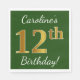Green, Faux Gold 12th Birthday + Custom Name Napkin