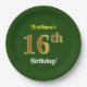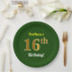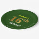 Green, Faux Gold 16th Birthday + Custom Name Paper Plate
