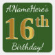 Green, Faux Gold 16th Birthday + Custom Name Square Sticker