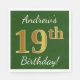 Green, Faux Gold 19th Birthday + Custom Name Napkin