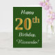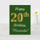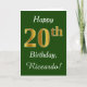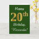 Green, Faux Gold 20th Birthday + Custom Name Card