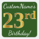 Green, Faux Gold 23rd Birthday + Custom Name Square Sticker
