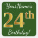 Green, Faux Gold 24th Birthday + Custom Name Square Sticker