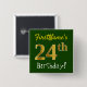Green, Faux Gold 24th Birthday, With Custom Name 15 Cm Square Badge