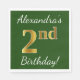 Green, Faux Gold 2nd Birthday + Custom Name Napkin