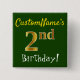 Green, Faux Gold 2nd Birthday, With Custom Name 15 Cm Square Badge