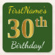 Green, Faux Gold 30th Birthday + Custom Name Square Paper Coaster