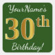 Green, Faux Gold 30th Birthday + Custom Name Square Sticker