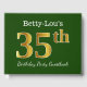 This guest book design features the ordinal number "35th" with a faux gold-like appearance. It also features a customised name, and a green coloured background. It could be used at a party for somebody celebrating their thirty fifth birthday. [~Z0000056]